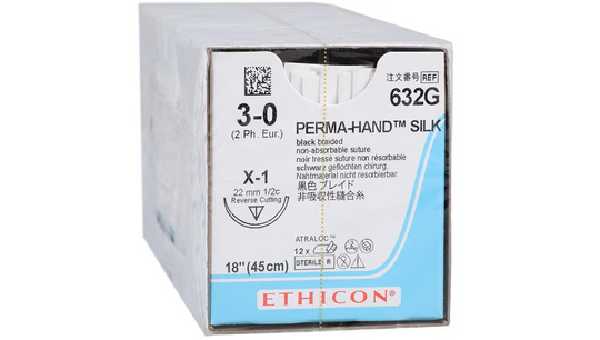 SUTURE ETHICON 3-0 SILK 632G X1 NEEDLE (12/BX)