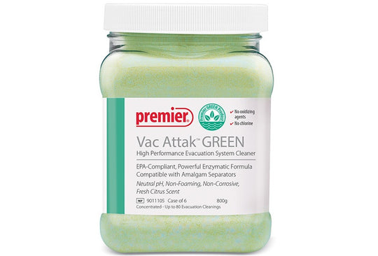 Vac Attak™ Green High Performance Evacuation System Cleaner offers an effective, environmentally friendly formula for cleaning evacuation lines. It is an easy-to-use powder with a fresh citrus scent. Neutral pH No oxidizing agents Meets ADA best...Regular price $69.75Regular price $69.75 -