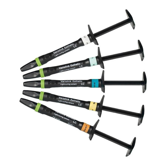 Variolink® Esthetic is an esthetic light- and dual-curing luting composite for the permanent cementation of demanding ceramic and composite resin restorations. Excellent shade stability Easy excess removal Flexible, situational consistency Impressive radiodiagnostics Optimal bonding Proven bond...Regular price From $32.95Regular price From $32.95 -