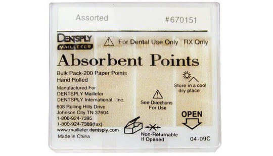 Maillefer® Absorbent Paper Endodontic Points are hand rolled and designed for maximum absorbency.Regular price $19.55Regular price $19.55 -