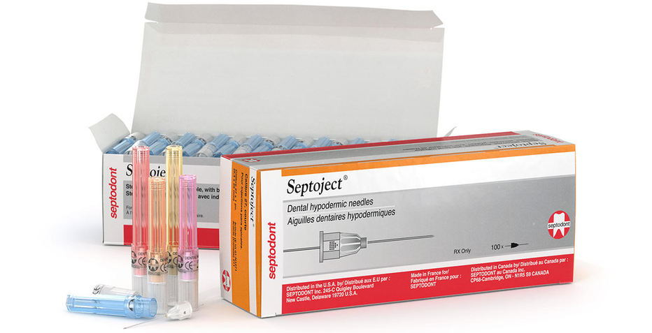 Septoject® sterile, single-use dental needles (plastic needle hubs) are used for routine administration of local anesthetics.