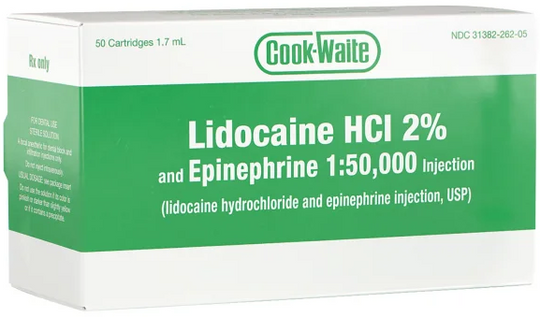LIDOCAINE 2% 1:50 GREEN (50/BX)