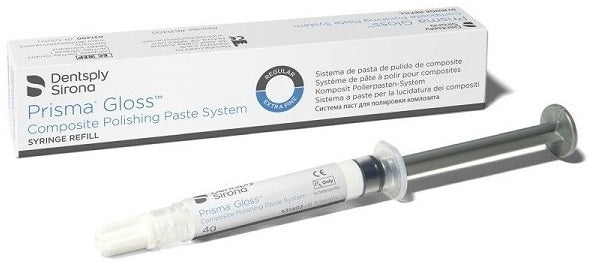 Prisma® Gloss™ Composite Polishing Pastes are water-soluble, aluminum oxide pastes designed for final polishing of anterior and posterior composite restorations, diastema closures, esthetic incisal lengthenings and veneers.