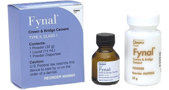 Fynal® Crown & Bridge Cement is a zinc oxide-eugenol (ZOE) composition cement designed for the final cementation of finished metal and PFM crowns, bridges and inlays.
