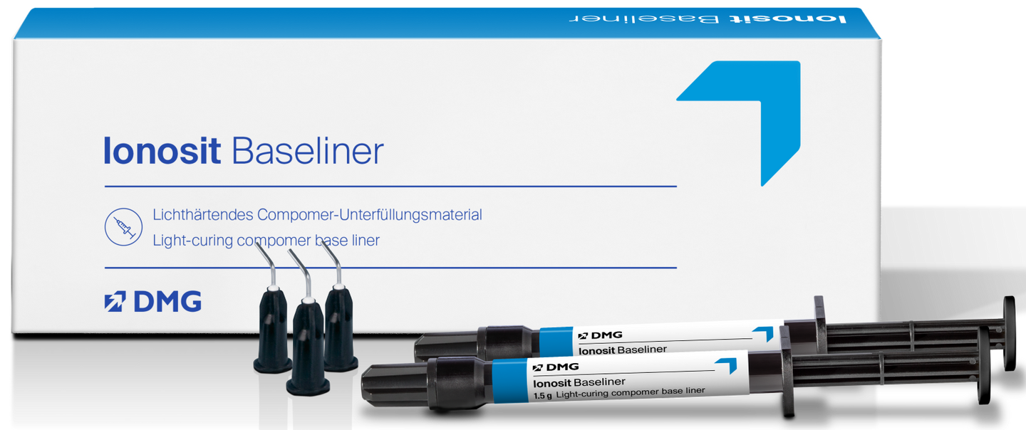 Ionosit is a patented, single component, light-cured base material for composite and amalgam restorations that expands to compensate for polymerization contraction.
