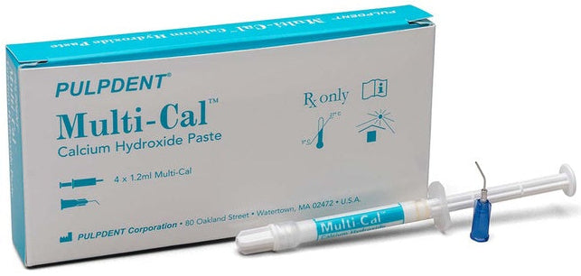 Multi-Cal™ Non-Setting Calcium Hydroxide Paste is a smooth, creamy calcium hydroxide preparation recommended for all clinical applications where calcium hydroxide is indicated. It is a bactericidal, bacteriostatic, radiopaque and has a pH greater than 12.