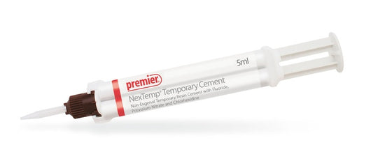 NexTemp™ Temporary Cement is a eugenol-free cement with fluoride, potassium nitrate and chlorhexidine. Potassium nitrate reduces sensitivity and acts as a sedative to the pulp Chlorhexidine acts as an antibacterial agent Fluoride releasing Automix syringe delivery...Regular price From $58.49Regular price From $58.49 -