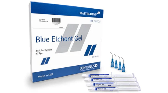 BLUE Etch Gel, 37% Phosphoric Acid, 4 - 1.2 ml Luer Lock Syringe with Blue Luer Lock Needle Tips.