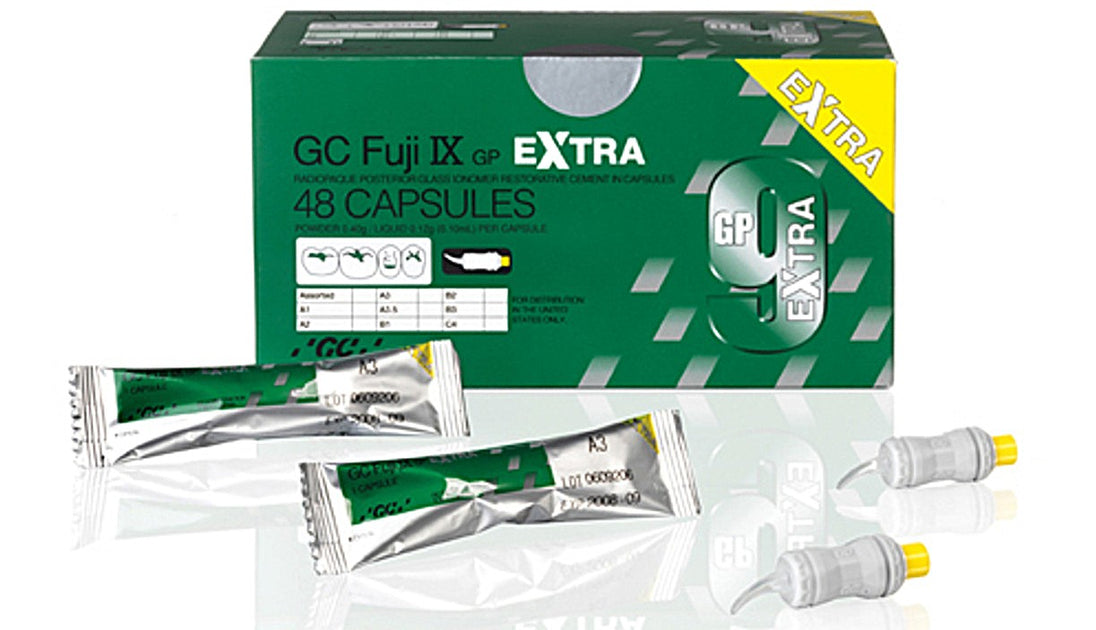 Contains: 48 capsules, 10 of each shade: A2, A3, A3.5; 9 of each shade: B2 and B3; 1 GC Capsule Applier III; 1 (5.7 ml) bottle cavity conditioner; 1 (5.7 ml) bottle Fuji Coat LC