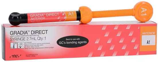 Gradia® Direct is light-cured, micro-filled hybrid resin composite with microfine pre-polymer resin fillers, a unique coupling agent and urethane dimethacrylate co-monomer matrix. This product offers significant advantages in esthetics, polishability, wear resistance and fracture toughness.