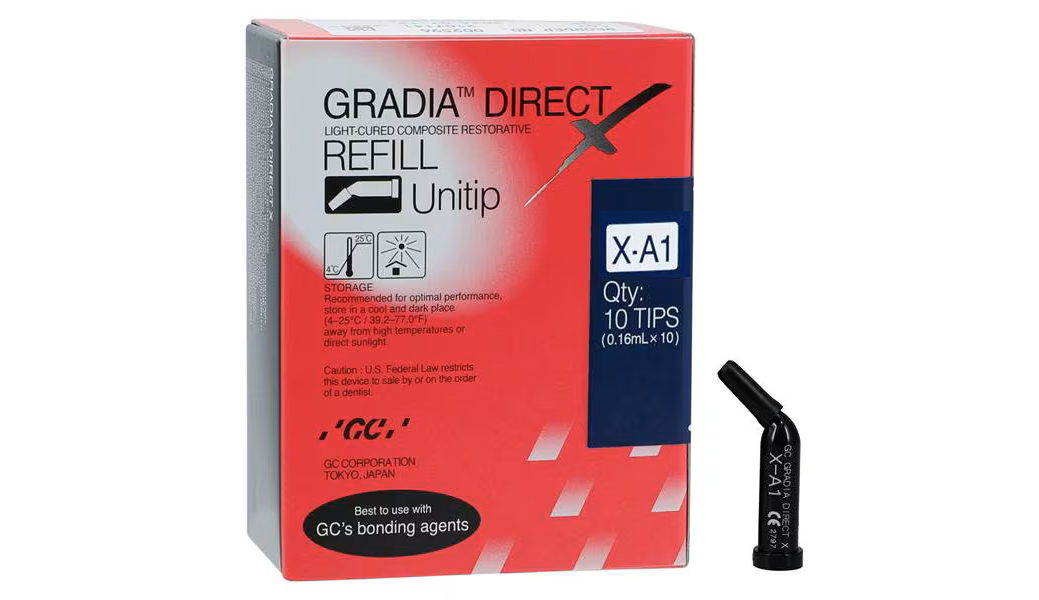 GRADIA® DIRECT X simplifies the restorative process with a unique color adaptive matrix for a superb chameleon effect. Over 90% of posterior restorations can be done with a single shade. The mix also has extremely low polymerization shrinkage stress to minimize post-operative sensitivity while activator filler particles strengthen the resin matrix for optimum wear resistance and gloss retention.
