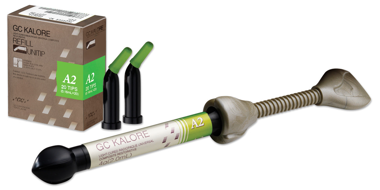 GC Kalore™ is a light-cured, radiopaque, universal composite material used for a variety of direct restorations.