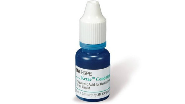 Ketac™ Conditioner is a polyacrylic acid solution for removal of the smear layer after tooth preparation. Dentin conditioning with Ketac™ Conditioner significantly increases the bond of glass ionomer cement fillings.
