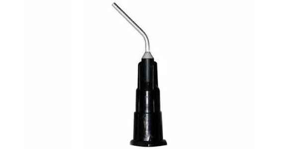 Disposable, blunt-end tip for dispensing etchants, resins and flowable composites.