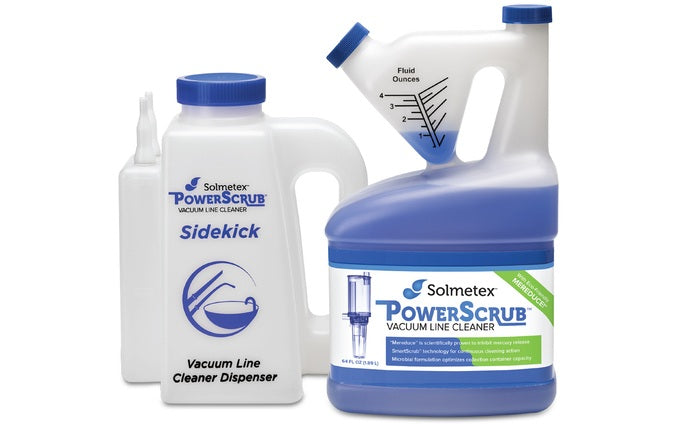 PowerScrub™ Vacuum Line Cleaner provides a thorough cleaning of vacuum lines. It was designed exclusively for the NXT Hg5 Amalgam Separator to maximize the capacity of the collection container.