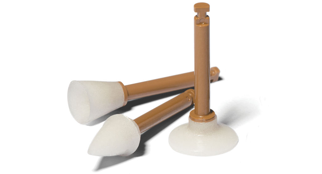 One-piece pre-mounted finishing discs, cups and points eliminate cumbersome and multiple disc changes; you can contour, finish and begin polishing with one step. Abrasiveness is controlled by the pressure applied.