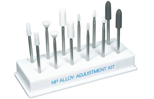Use for chairside adjustments of nickel-chrome or chrome-cobalt prostheses and for polishing adjusted surfaces. Lab Series White stones for adjusting Hardie points for polishing Handpiece kit Available in a plastic kit Use NP Alloy Adjustment kit...Regular price $50.99Regular price $50.99 -