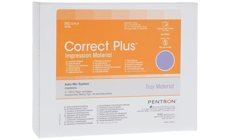 Correct Plus® is a vinyl polysiloxane impression material designed to accommodate all impression techniques. This VPS material is specially formulated to provide exceptional tear strength with outstanding hydrophilicity for more accurate impressions in the presence of fluids.