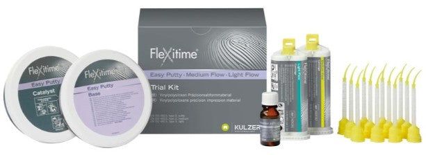 Flexitime® is a vinylpolysiloxane impression material that has a full range of indications and a working time from 1 to 2.5 minutes (total set time 3.5 to 5 minutes).