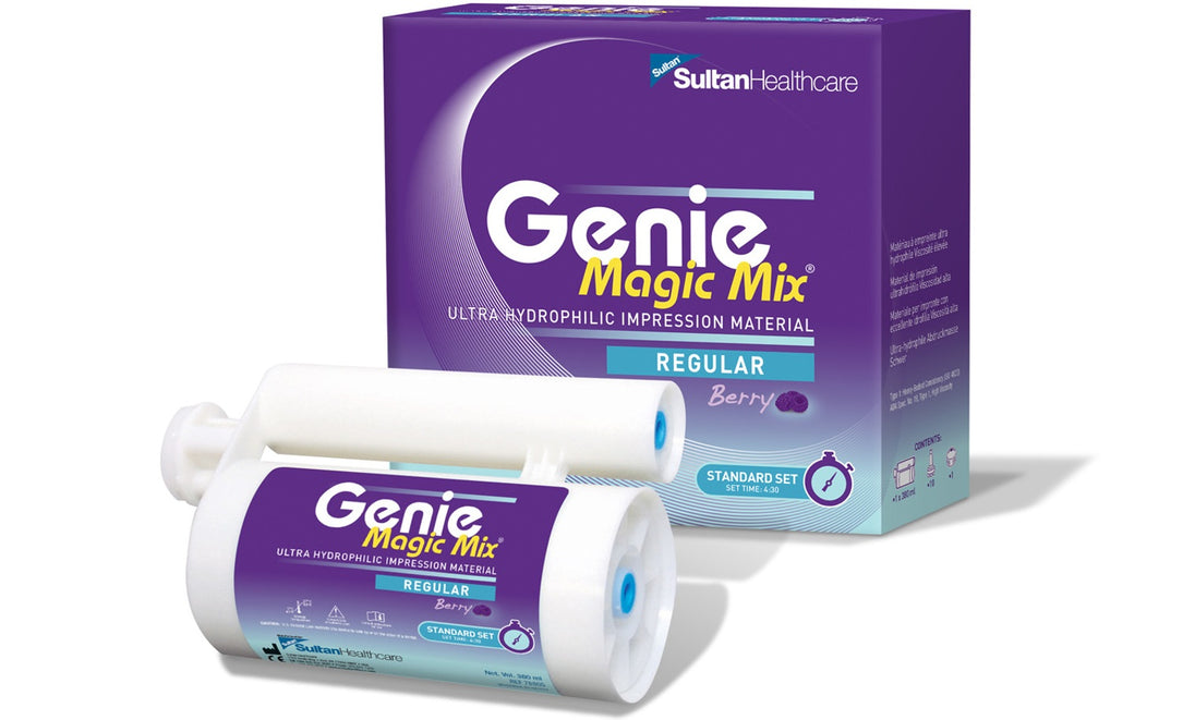 Genie® Magic Mix is a fast, easy and economical way to use Genie® Impression Material. The new disposable 380 ml cartridges have 5% more material than foil bag systems and can be used with automix dispensing machines.