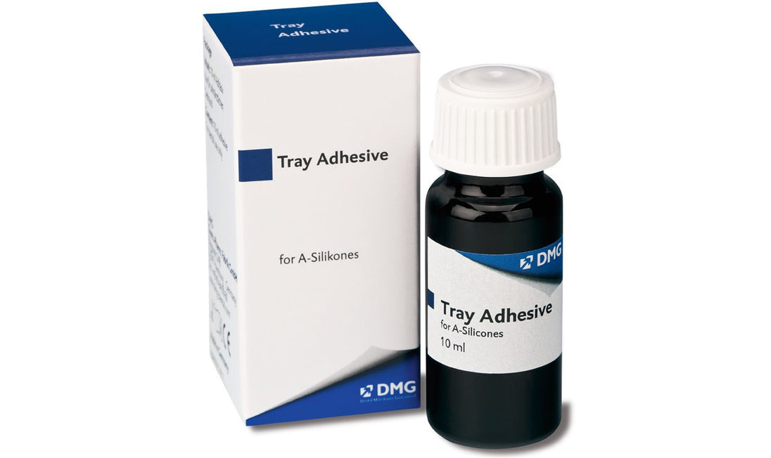 Tray Adhesive for A-silicones is formulated for optimal adhesion between addition-silicone-based impression materials (VPS) and minimally retentive or nonretentive metal, plastic or resin trays. The adhesive is ideal for use with all impression materials, especially DMG America’s Honigum® Impression System.