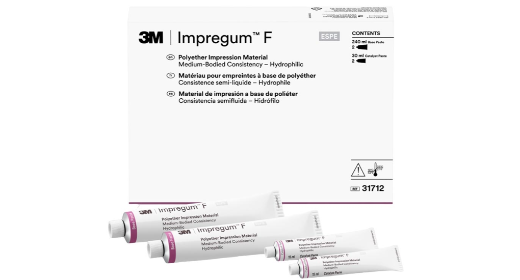 3M™ Impregum™ F Impression Material is designed for dentists who prefer a hand-mix formulation and a monophase technique. This medium body polyether dental material delivers high-precision impressions and is especially well suited for implant and functional impressions.