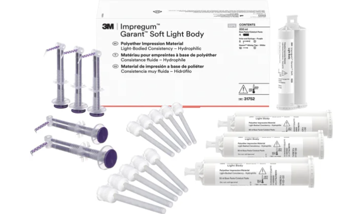 3M™ Impregum™ Soft Polyether Impression Material performs well in moist environments and is ideal for complex cases. Sufficient working time, excellent flowability and intrinsic hydrophilicity help you achieve precise, accurate dental impressions on the first take.