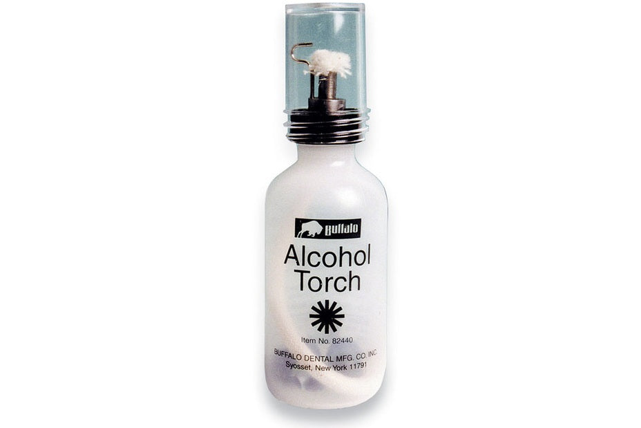 Alcohol Torch produces a needle-point flame with gentle pressure on the weighted plastic bottle.