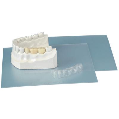 Stiff clear material is ideal for hard splints, thin splints, surgical trays, orthodontic retainers and bleaching trays. Sticks to acrylics for various dental appliances.