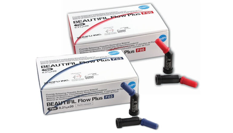 BEAUTIFIL® Flow Plus is an injectable hybrid restorative. This composite is indicated for Class I, II, III, IV & V restorations as well as minimally invasive restorations, root caries restorations, filling primary teeth, restoring defects in enamel, additional filling and modification after composite resin filling and undercutting blockouts.