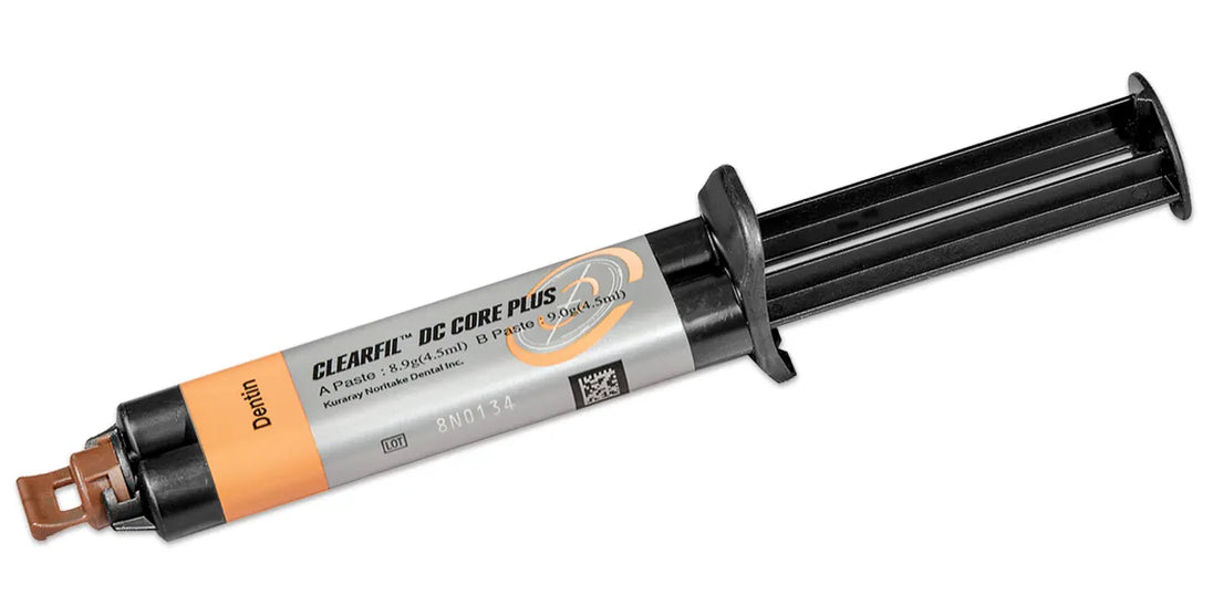 Dual-cure, radiopaque two-component core build-up material supplied in a convenient automix delivery system. Superior compressive and flexural strength with a filler loading of 74% by weight. Flows with control; no matrix band needed. Can also be used for cementation of posts. Cuts like dentin when being prepared, and affords long-term durability.