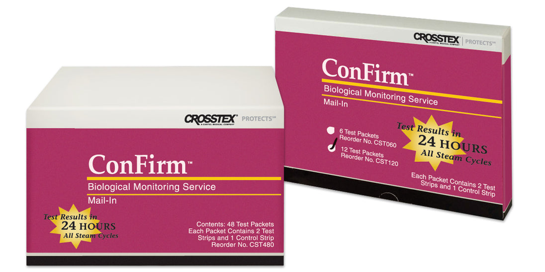 ConFirm® Mail-In Sterilizer Monitoring System is a biological indicator that is the most accepted means of sterilization monitoring. It directly determines whether the most resistant microorganisms are present, because spores used in BIs are more resistant and present in greater numbers than the common microbial contaminants found on patient-care equipment. A passed BI test, which confirms no spore growth, indicates other potential pathogens in the load have been killed.