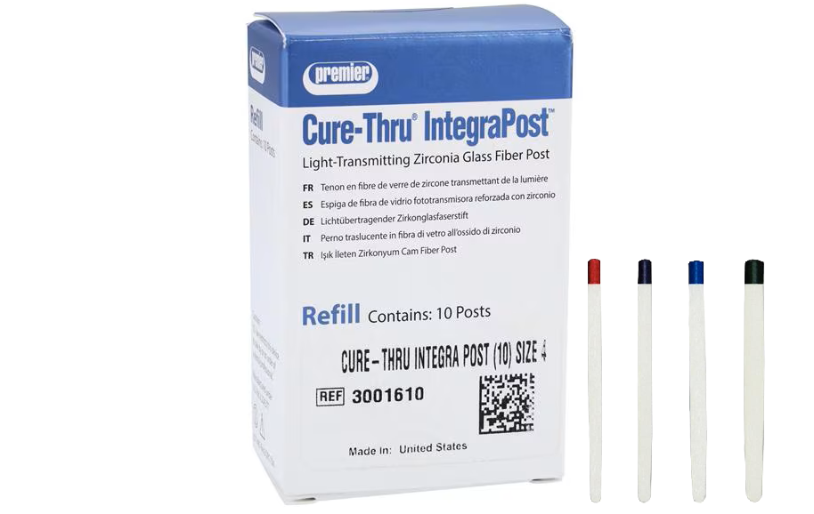 Cure-Thru® IntegraPosts® are light-transmitting zirconia glass fiber posts used to retain restorative cores and reinforce endodontically treated teeth.