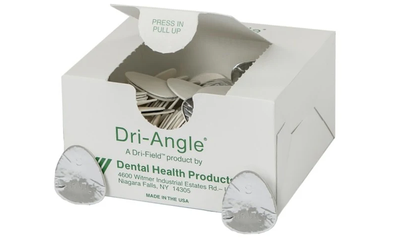 Dri-Angle® Cotton Roll Alternative is a thin, absorbent, cellulose triangle that provides an alternative to cotton rolls to provide a dry field for a variety of dental procedures including composite restorations as well as cementing and bonding.