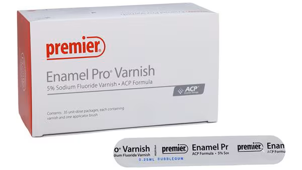 Enamel Pro® Varnish is a brush-on fluoride treatment that remineralizes enamel and dentin.