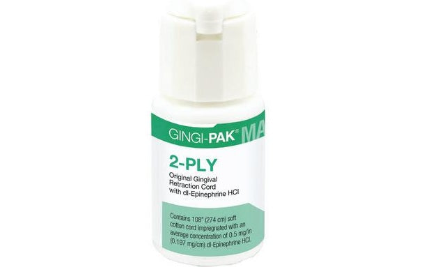 Retraction cords in Gingi-Pak 2 Ply and Crown-Pak 4 Ply are loosely wound so that the strands may be separated, twisted or combined to make them ideal for use in the gingival sulcus regardless of the size or condition.