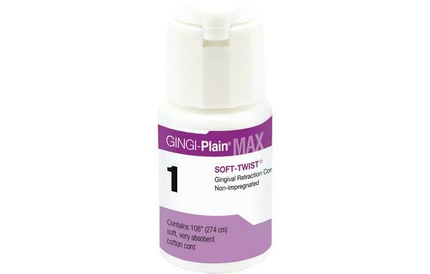 Gingi-Pak® Max Soft-Twist™ Nonimpregnated Retraction Cord is a highly versatile, 100% cotton cord with epinephrine HCl as its active ingredient. It is suitable for all retraction techniques, including the 2-cord technique.