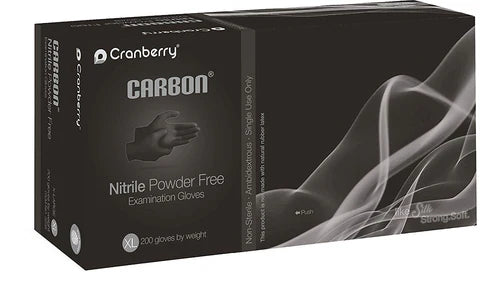 Cranberry Carbon® Nitrile Exam Gloves have a distinct black color to minimize visible stains during use.