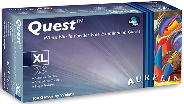 Aurelia® Quest™ white nitrile gloves provide protection against bacteria for those sensitive to latex.