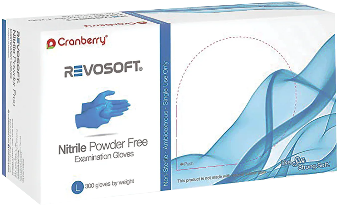 RevoSoft® Nitrile Exam Gloves have a unique formulation that increases comfort, softness and fit. Powder Free Gloves offer increased comfort, softness and fit. These gloves provide enhanced fingertip texture for superior handling and increased control.