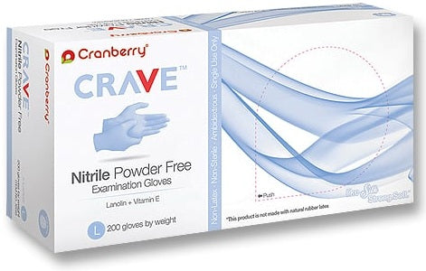 Crave® Nitrile Powder-Free Examination Gloves are coated with skin revitalizing lanolin and vitamin E to relieve dry rough skin. SmartFeel™ formulation for perfect balance of tactile sensitivity, softness and grip.