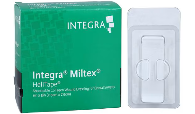 HeliTAPE® is a thin, soft, white, pliable collagen tape used for dressing minor wounds. Tape accelerates wound healing and is absorbed into the body after 10 to 14 days. Each dressing is sterile and individually packaged.