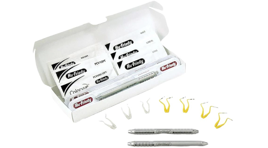 Contains: 1 Implacare™ II scaler handle, 5 sets of Implacare™ scaler tips, 1 set of each: 204S, H6/H7, 4R/4L, Langer 1/2 tips, Barnhart 5/6; 1 Colorvue® probe handle; 4 sets of Colorvue® probe tips, 1 set of each: PCV11 (3-6-8-11); PCV12 (3-6-9-12), Williams (1-2-3-5-7-8-9-10), UNC12 (1-2-3-4-5-6-7-8-9-10-11-12)