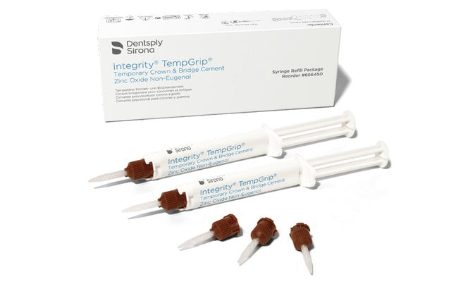 Integrity® TempGrip™ Temporary Crown and Bridge Cement Zinc Oxide Noneugenol is a temporary cement used to lute indirect provisional (temporary) restorations or limited term cementation of final restorations.