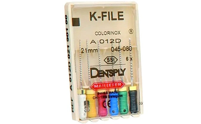 K Type Files are an endodontic tool designed to offer superior cutting efficiency and precision handling during instrumentation. They feature a twisted design and are manufactured from a square blank to clean and shape the root canals.