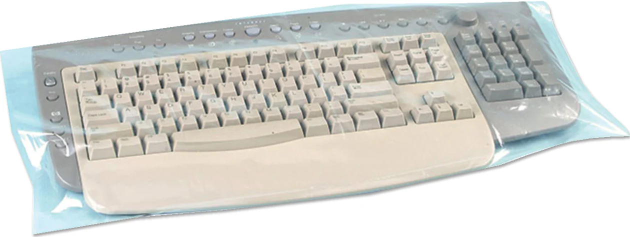 Keyboard Cover is a clear plastic sleeve with cuff that keeps computer keyboards free of debris and mist to diminish cross-contamination but does not block operation or visibility.