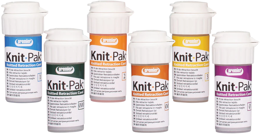 Knit-Pak+™ is an impregnated retraction cord created from unique knitted microfibers. The fibers are distinguished by having very low moisture content with high durability and retention properties. These attributes create a retraction cord with superior absorbency and a fray resistant pliable structure.