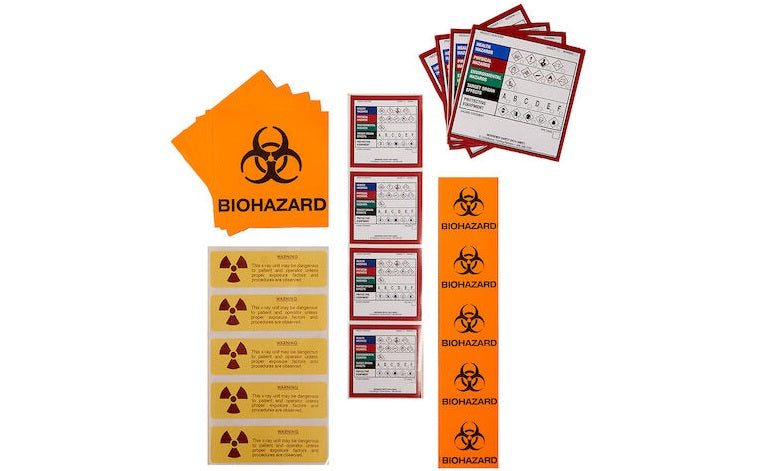 The variety pack offers various sizes of our chemical, biohazard and radiation labels.
