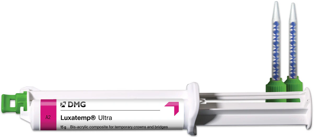 Luxatemp® Fluorescence Smartmix is a smaller convenient way to dispense without a gun. Luxatemp® Fluorescence is a bisacryl composite that is used to make durable, long-lasting temporary restorations.