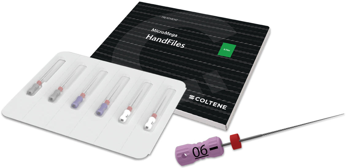 MicroMega Sterile B6 K-Files are presterilized, multi-use files packaged in individual blisters. The files are used for exploration, creating a glide path, canal patency, root canal debridement and determining working length and shaping.
